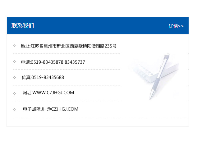 地址:常州市新北區友邦商務大廈1幢16、17層  電話:0519-85101652  傳真:0519-85112595  郵編:213022  網址:www_cz-jiayue_cn.zjbtjs.com  郵箱:xiajifengaa@163.com